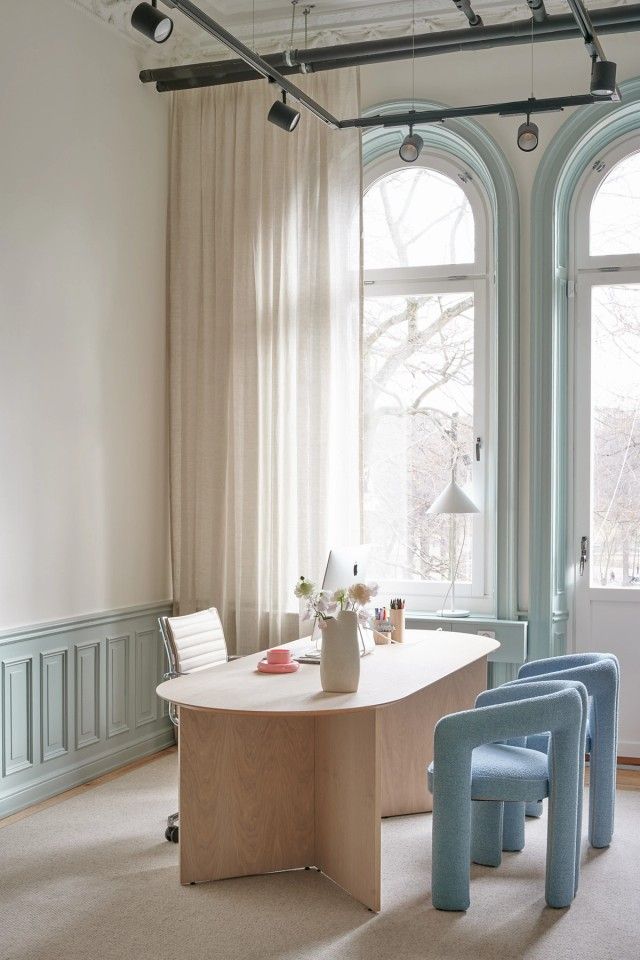 Le bleu ciel agrandit visuellement les volumes, ajoute de la lumière et donne aux pièces une qualité aérienne. Il fonctionne comme un dilatateur d’espace. C’est de la physique de la perception qui dépasse largement la tendance.